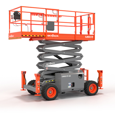 Rough terrain scissor lifts are ideal for outdoor aerial projects where access is limited or the ground surface is rough. Complete work at greater heights with this 26-ft. rough terrain diesel scissor lift that provides plenty of space to move around and take care of business. This rough terrain scissor lift can hold up to four workers at a time for maximum efficiency in the workplace. Designed for working at up to a 45% gradeability with foam-filled, rough terrain tires, this scissor lift rental is the right tool for outdoor jobs on hills and unusual surfaces.