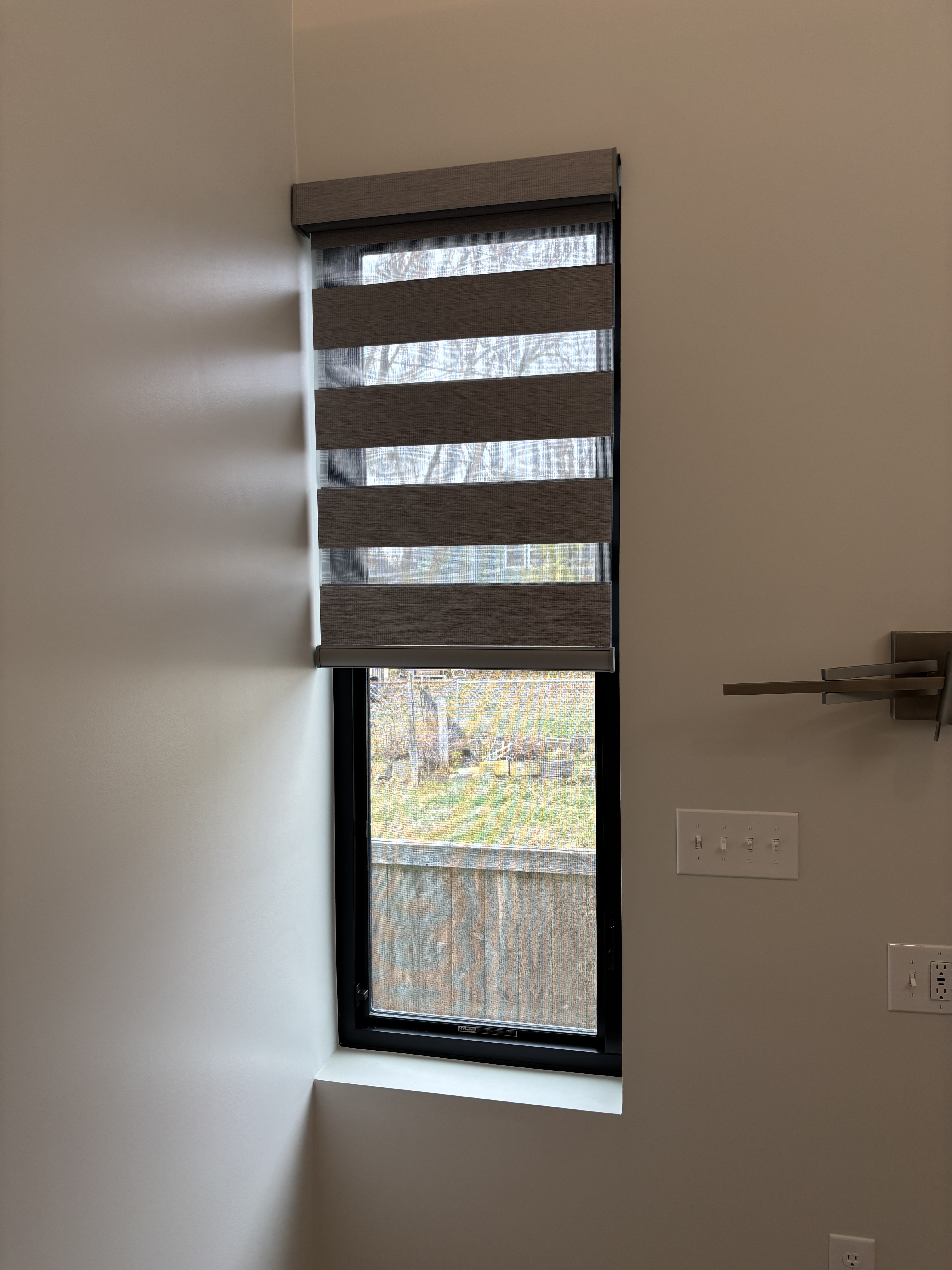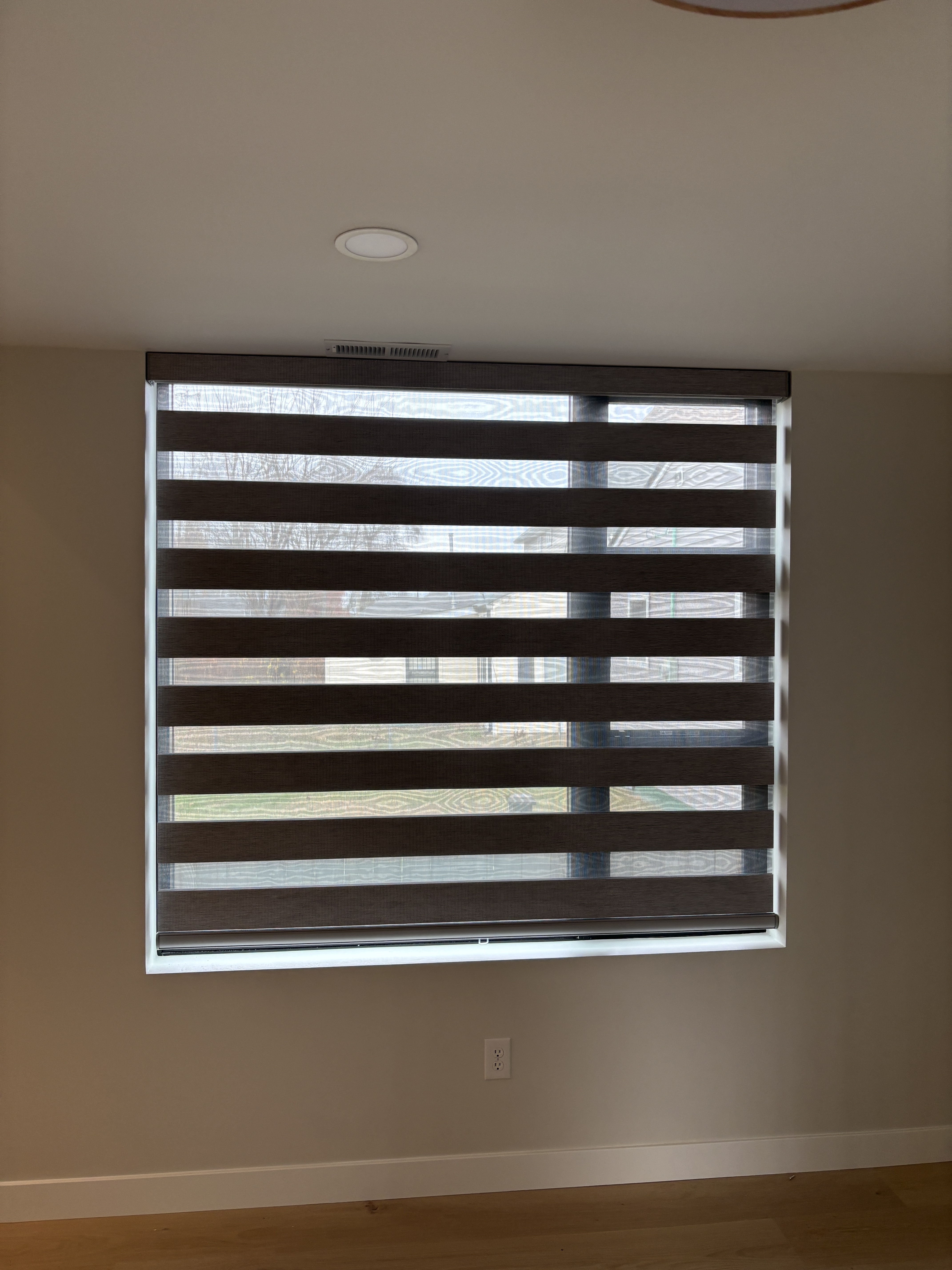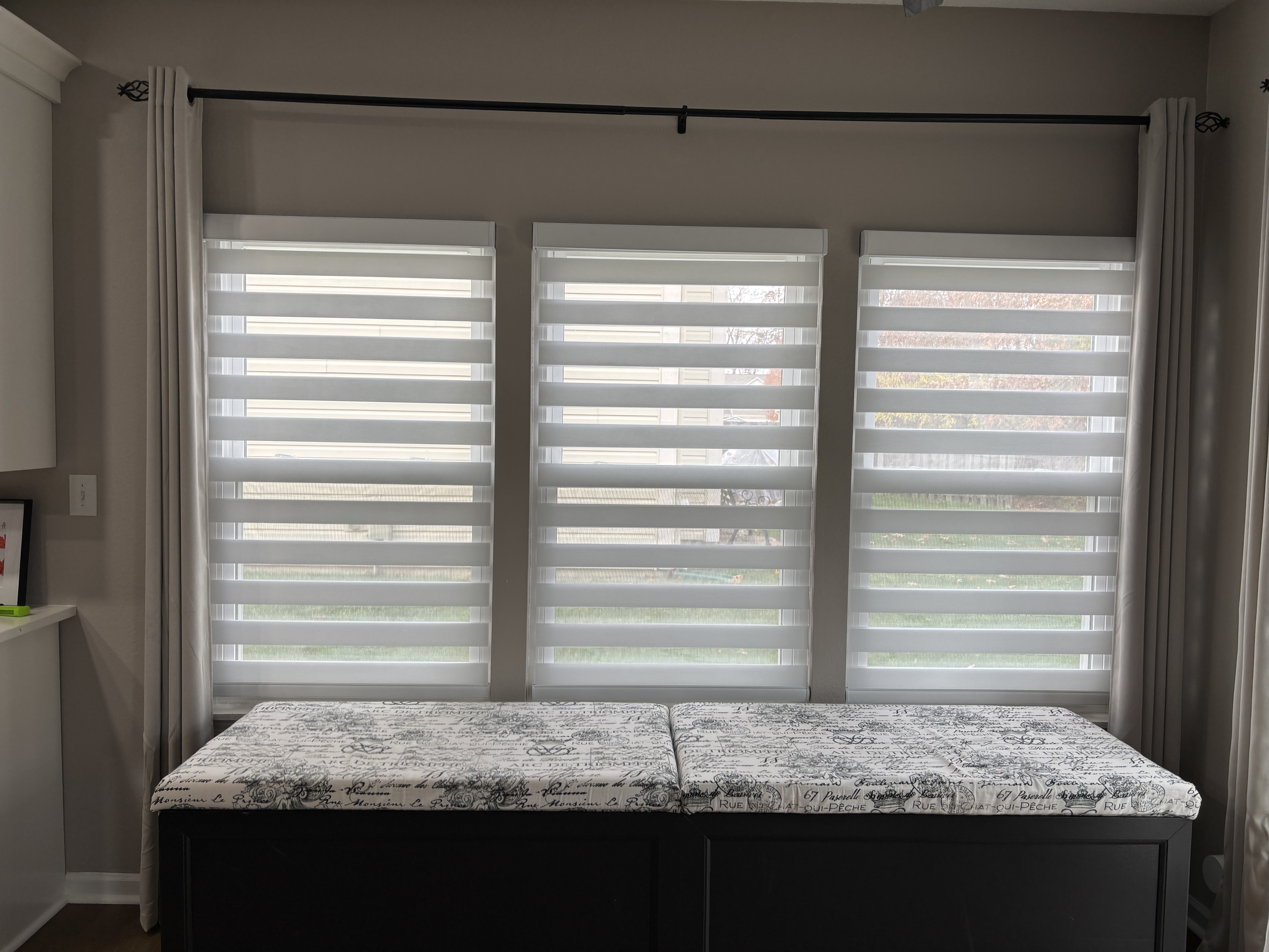 Dual sheer shades are great for people who want a modern look. When finished with a square cassette top treatment with fabric wrap, it looks elegant, clean and sharp. When rolled down, you can see the outside, but your privacy is still mostly protected through the sheer layers. It's a premium window covering that also pairs well with motorization and smart home automation.